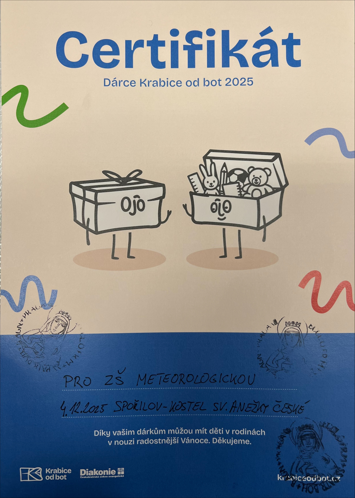 Naše škola se v letošním roce zapojila do vánoční sbírky Krabice od bot, jejímž cílem je potěšit děti, které by se jinak vánočního dárku nemusely dočkat.