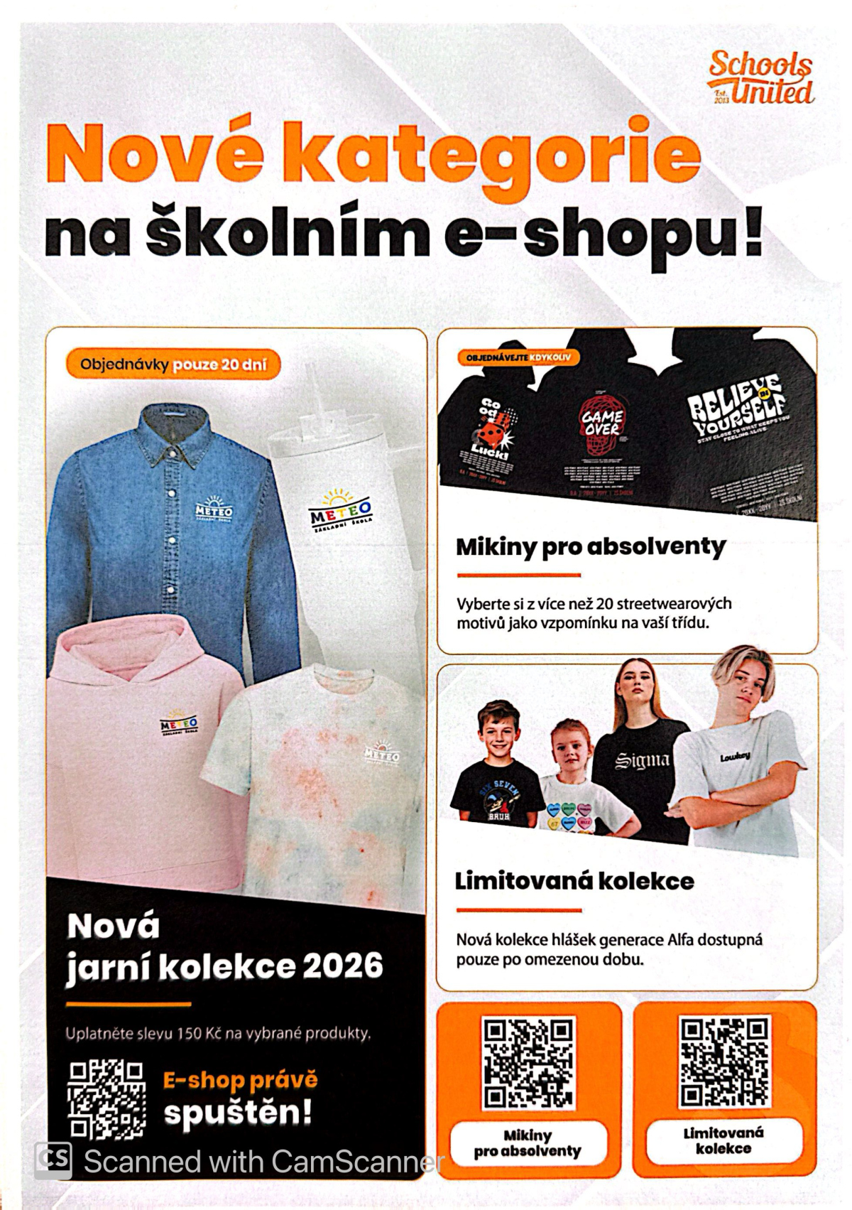 Škola nabízí možnost objednat dětem i sobě pohodlné a funkční oblečení, ale i batohy a další doplňky s logem školy.