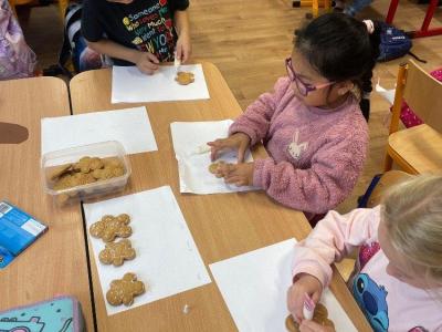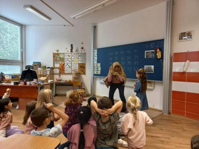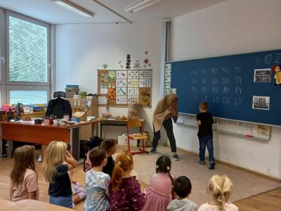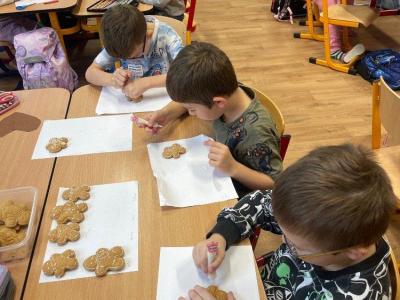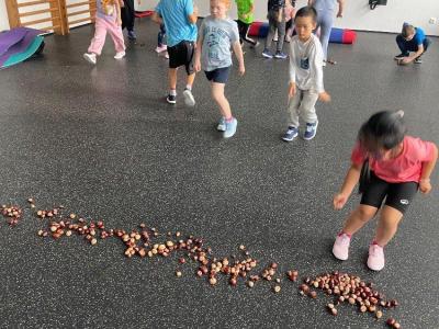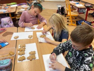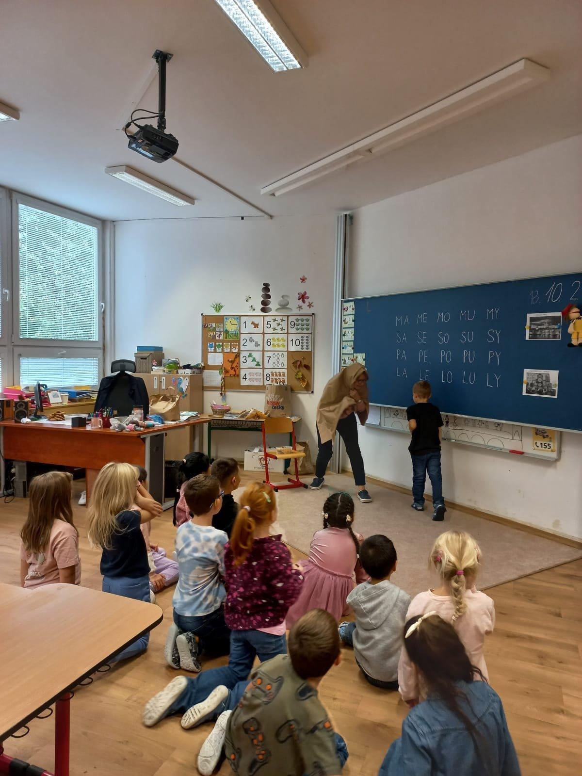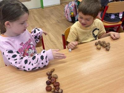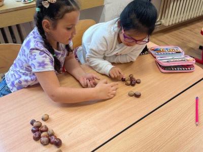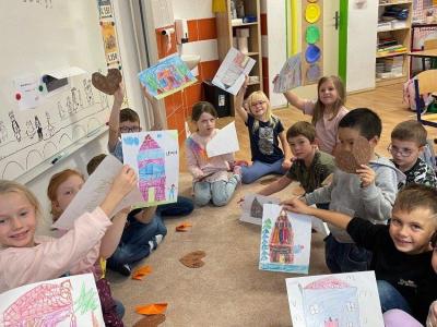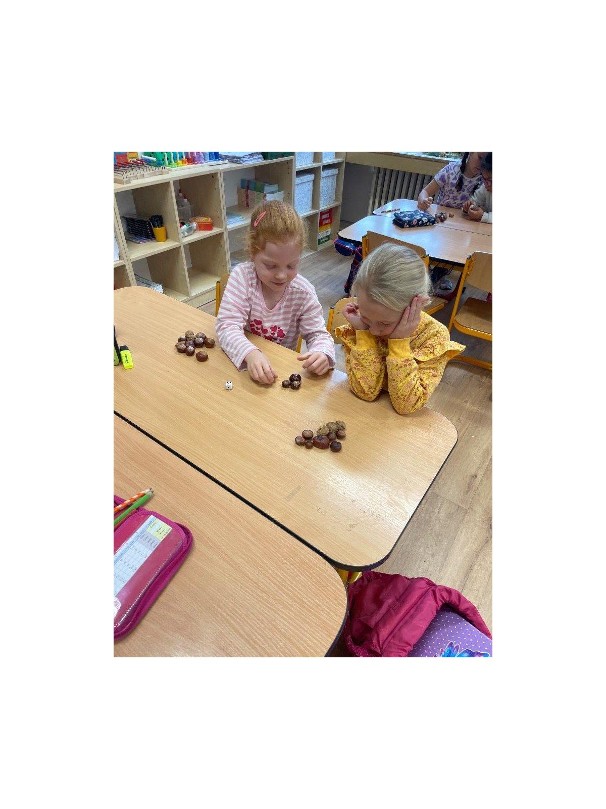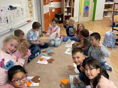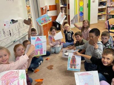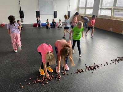 Sbírání listů, kaštanů, ořechů a žaludů nepřineslo jen odměnu ve formě lovení v kouzelné krabici, ale také velkou zábavu do hodin matematiky, prvouky a tělocviku. Zpíváme písničku o Praze, těšíme se na Karlův most a pátek patřil pohádce Perníková chaloupka.