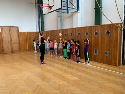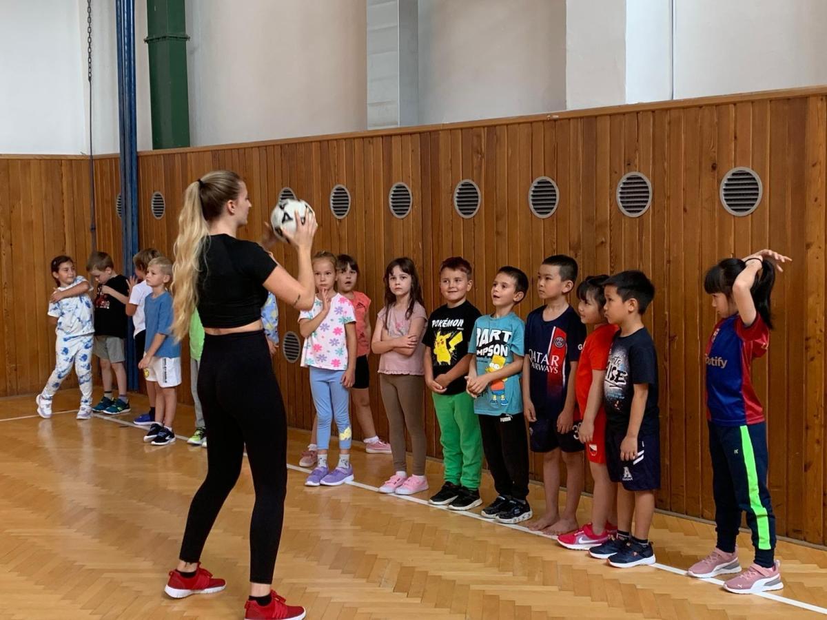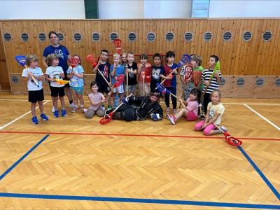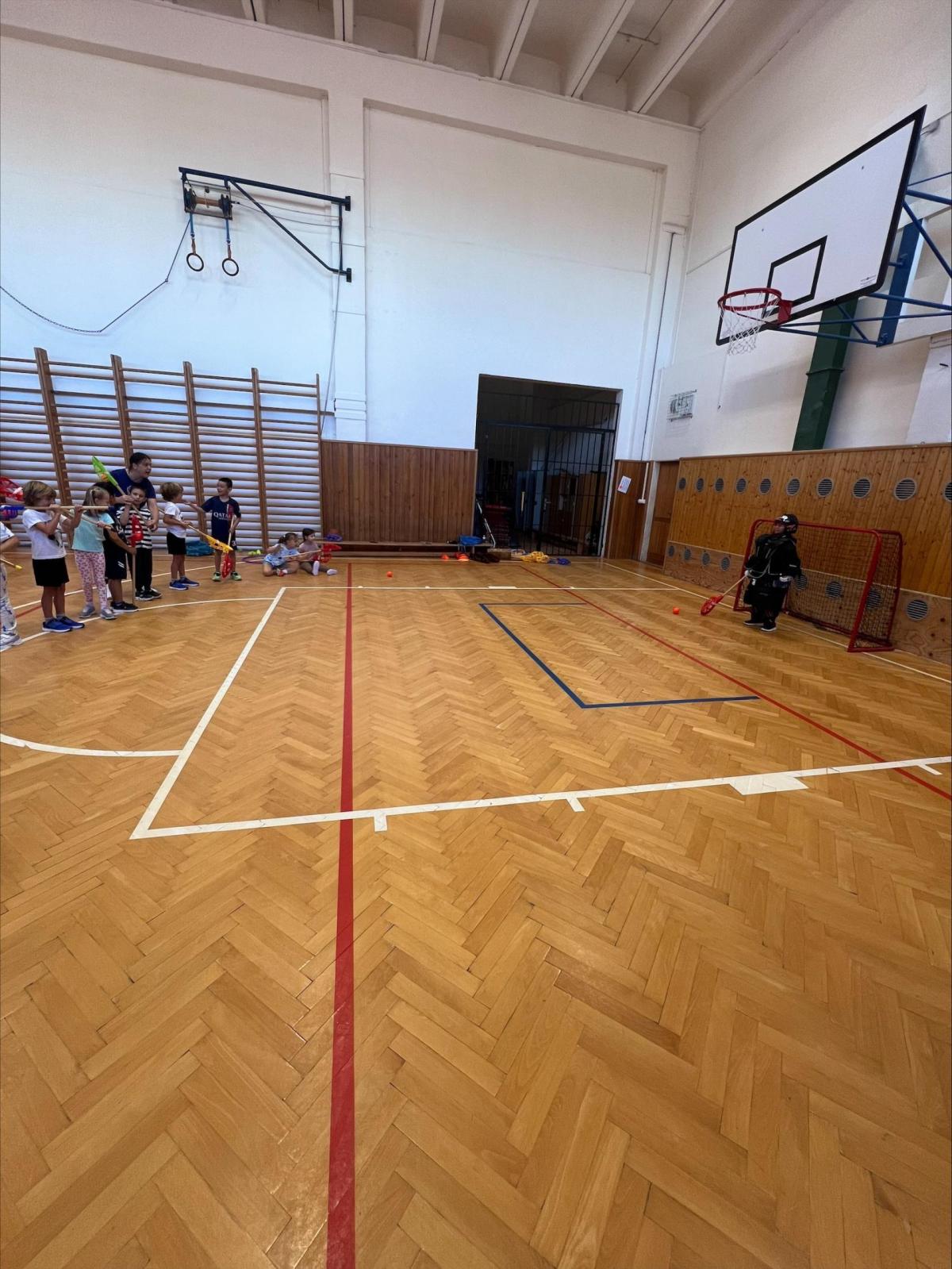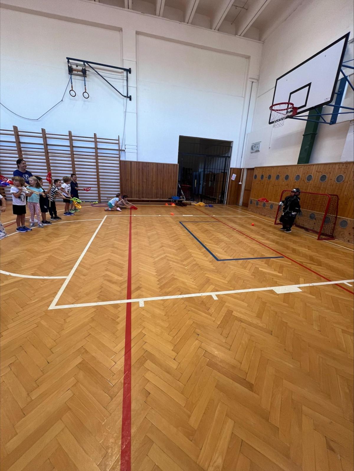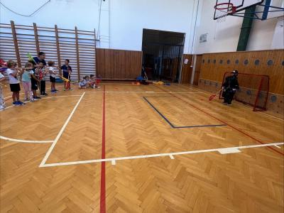 Děti si užily i ukázkovou hodinu tělesné výchovy, kde si vyzkoušely základy sportu lacrosse – házení a chytání míčku i jednoduché hry.
