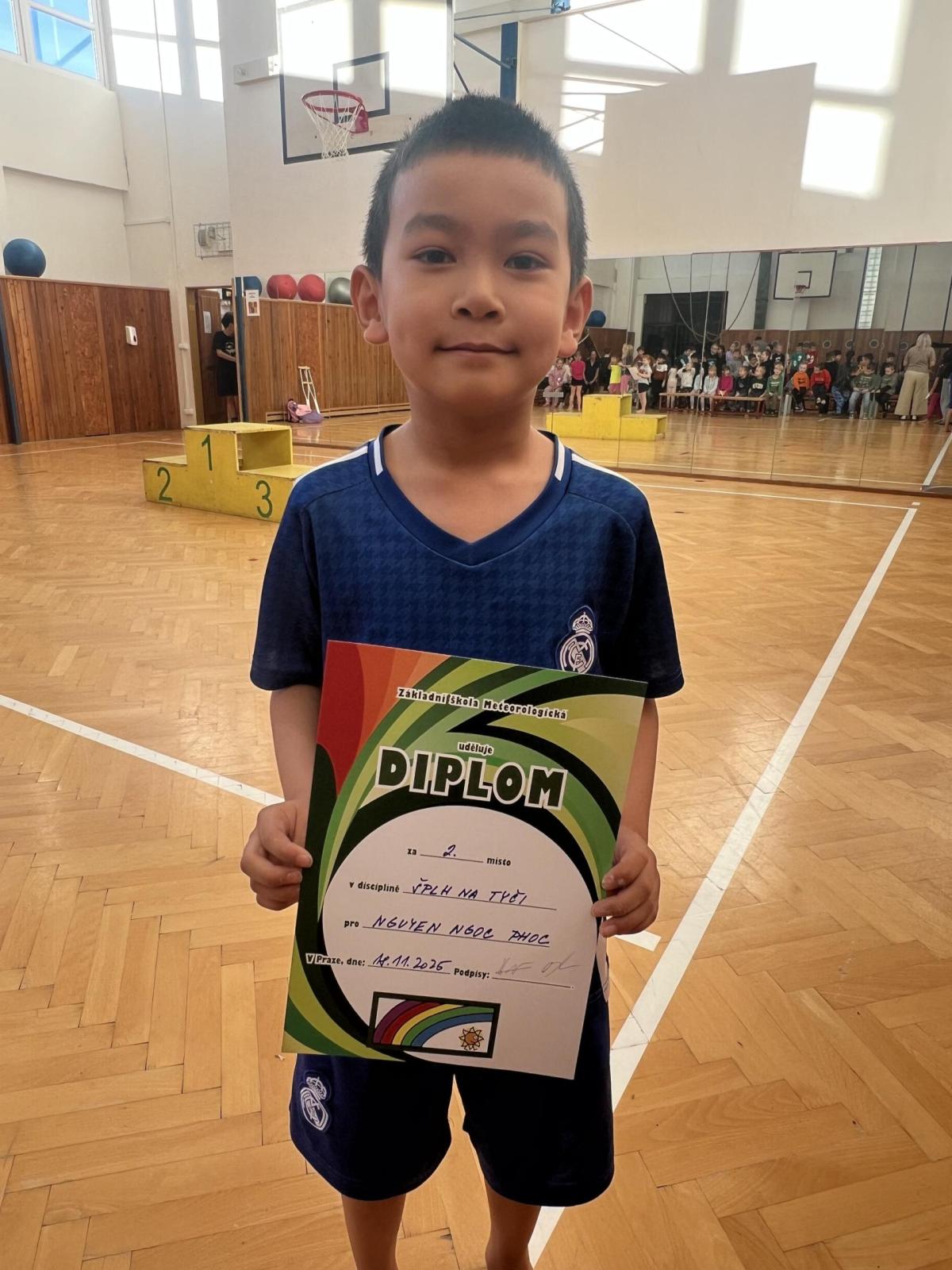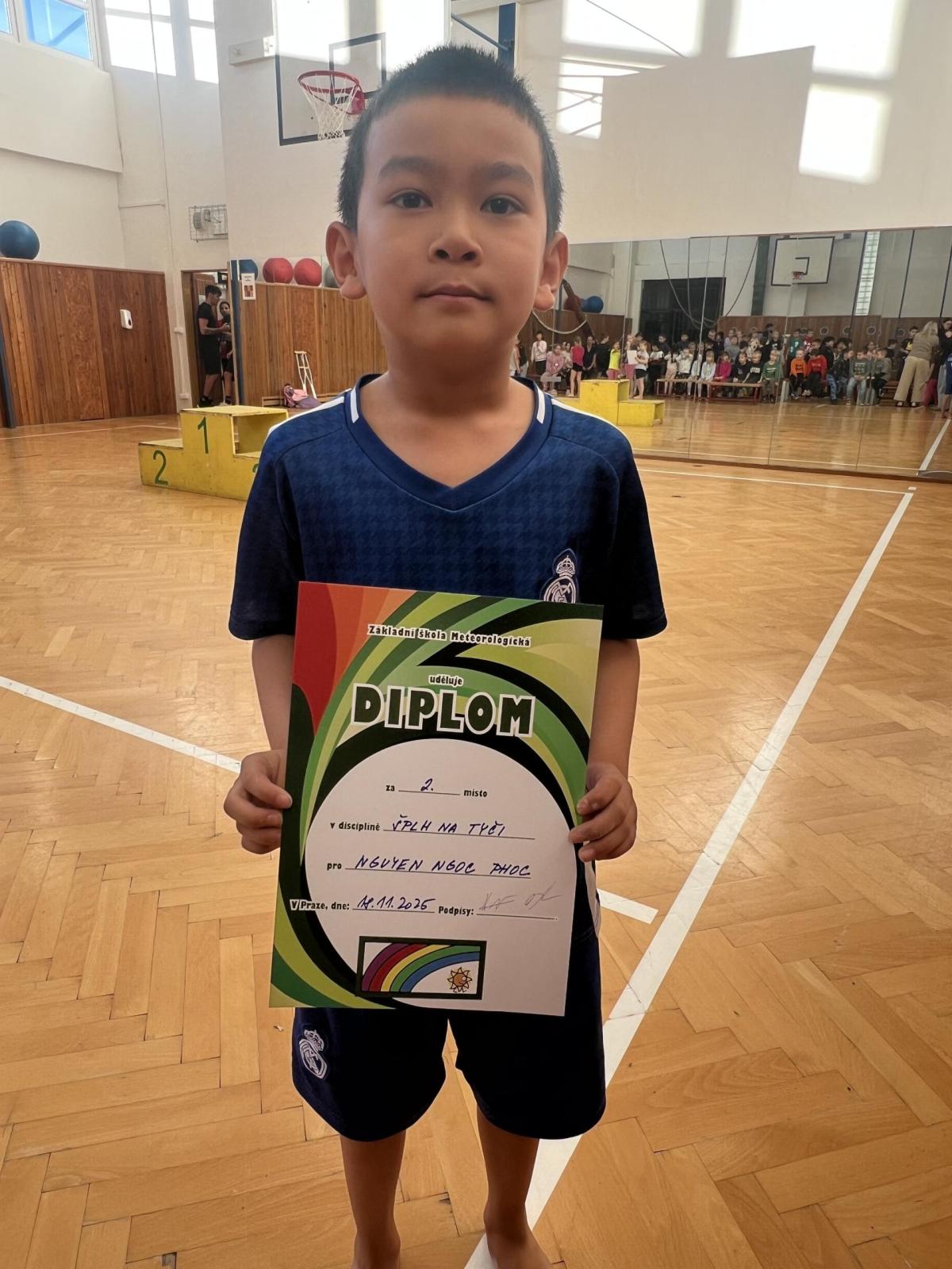 Náš spolužák Phuc reprezentoval naši třídu v závodech ve šplhu, kde se umístil na krásném 2. místě.