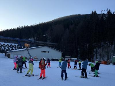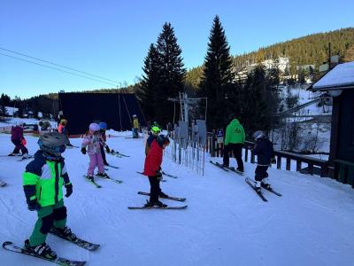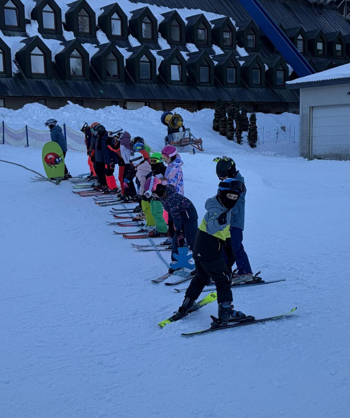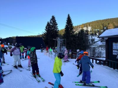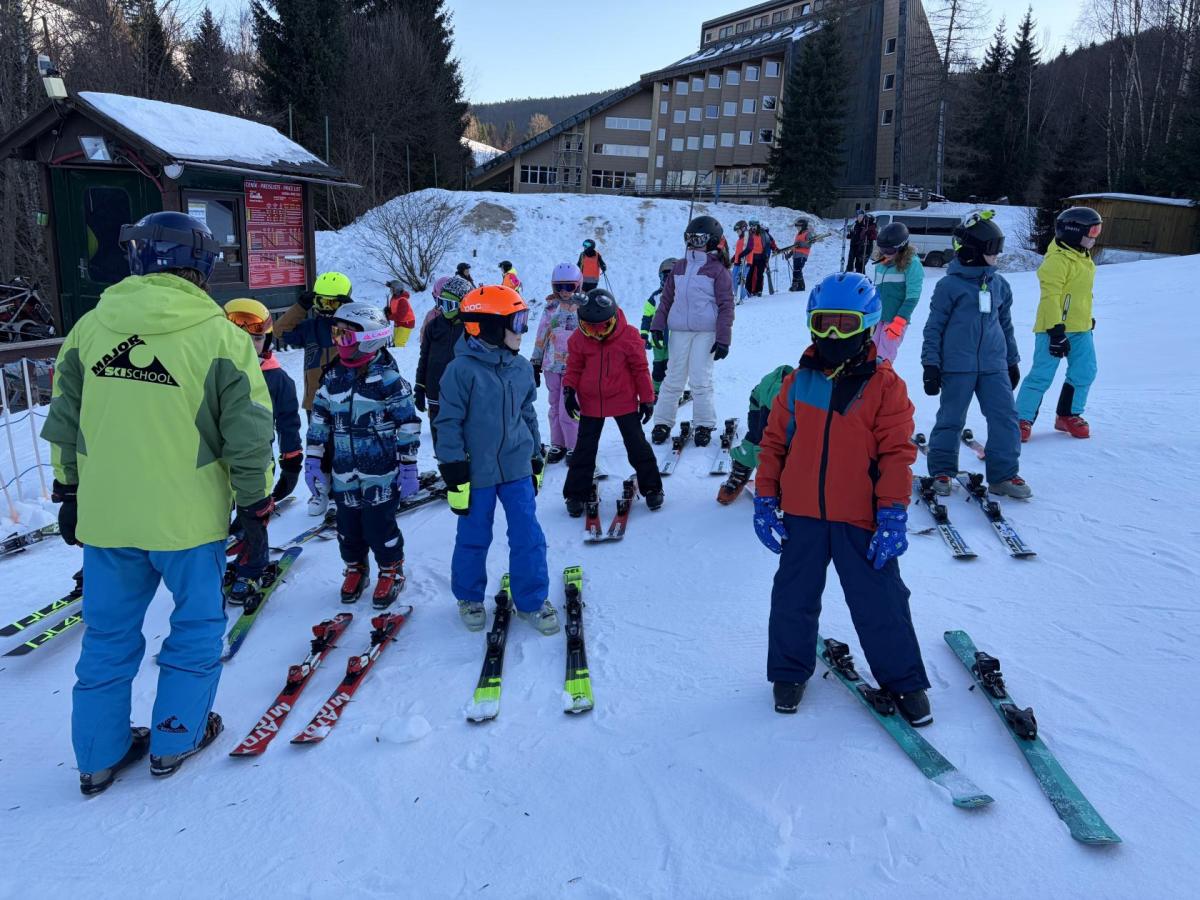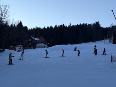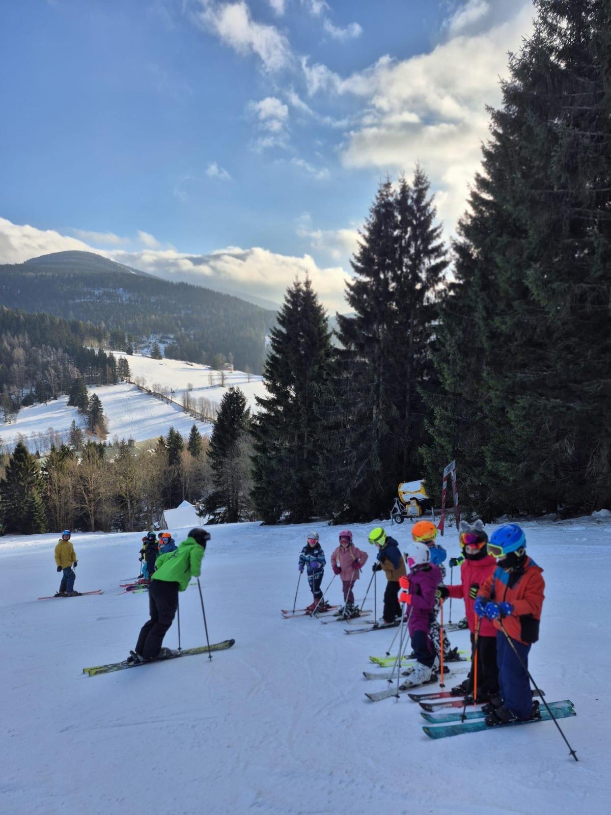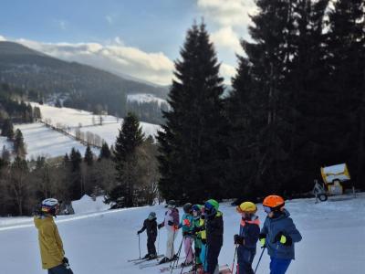 První den lyžování máme zdárně za sebou.. Dojeli jsme v pořádku, ubytovali jsme se, najedli a vyrazili ven. První lyžování jsme všichni statečně zvládli, začátečníci trénovali na mírném kopečku a pohyblivém koberci a ostatní na sjezdovce a vleku u hotelu pod dohledem instruktorů. Počasí bylo v pořádku, jsjezdovka byla místy zledovatělá, ale všichni se s tím poprali výborně. Zítra nás čeká lyžování dopoledne i odpoledne a po večeři budeme psát dopisy.