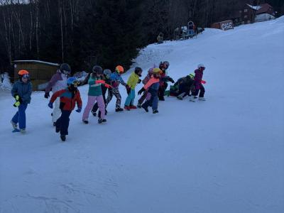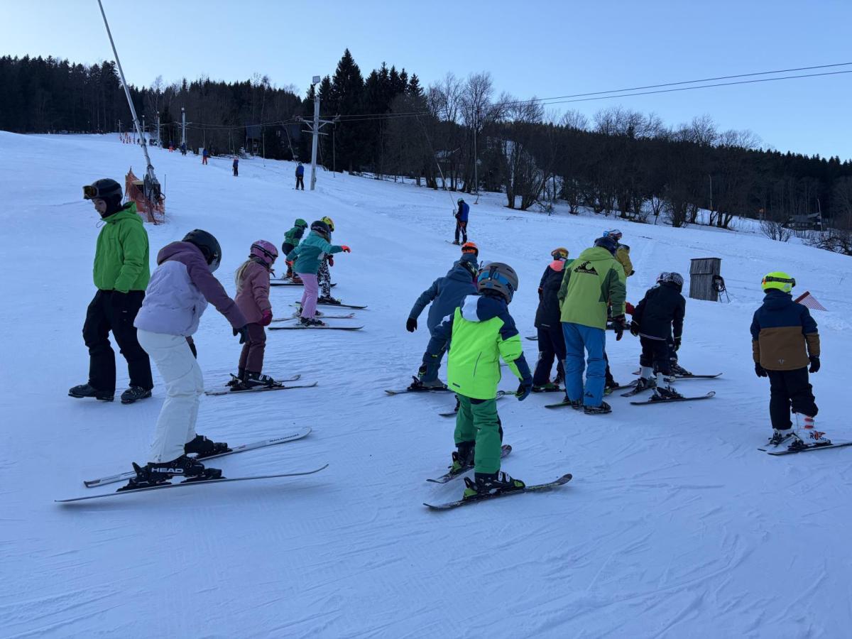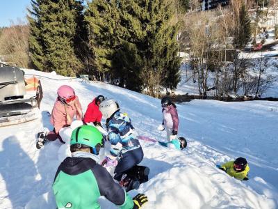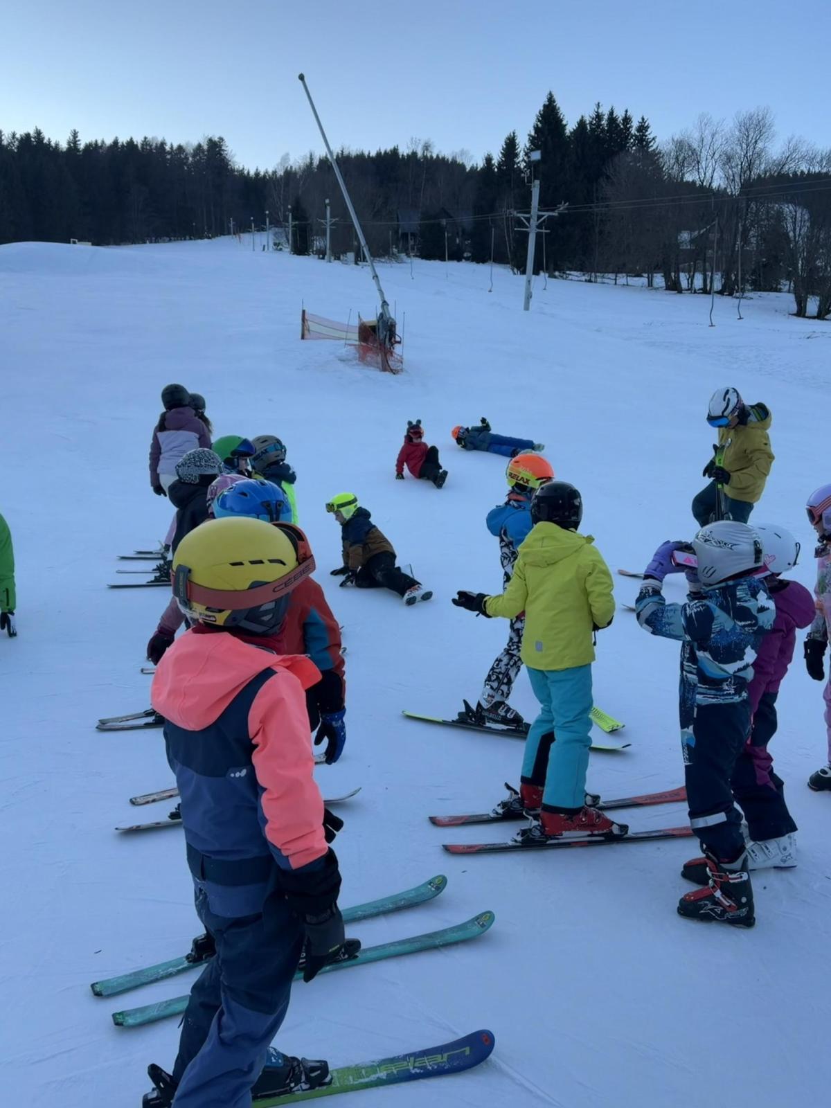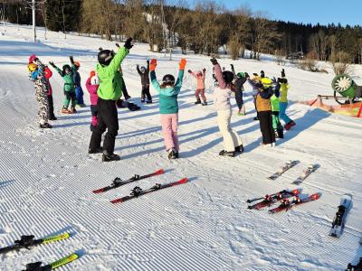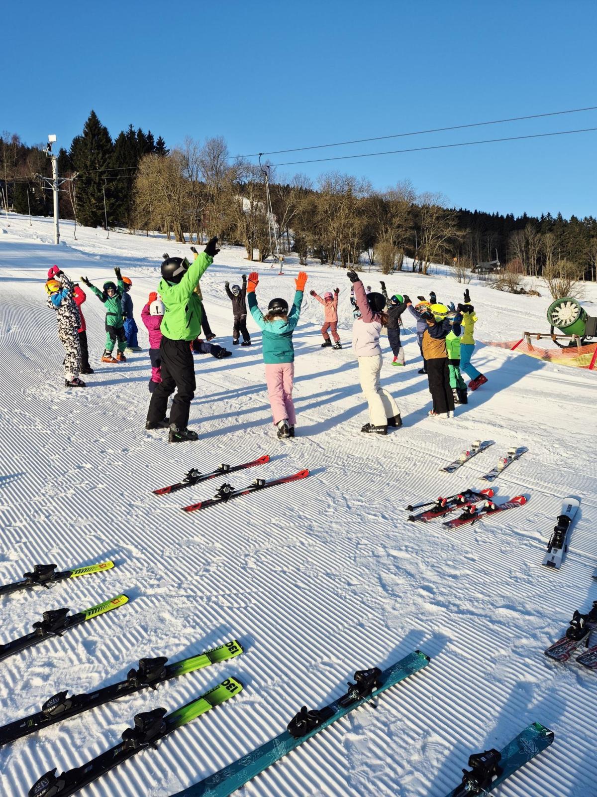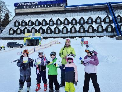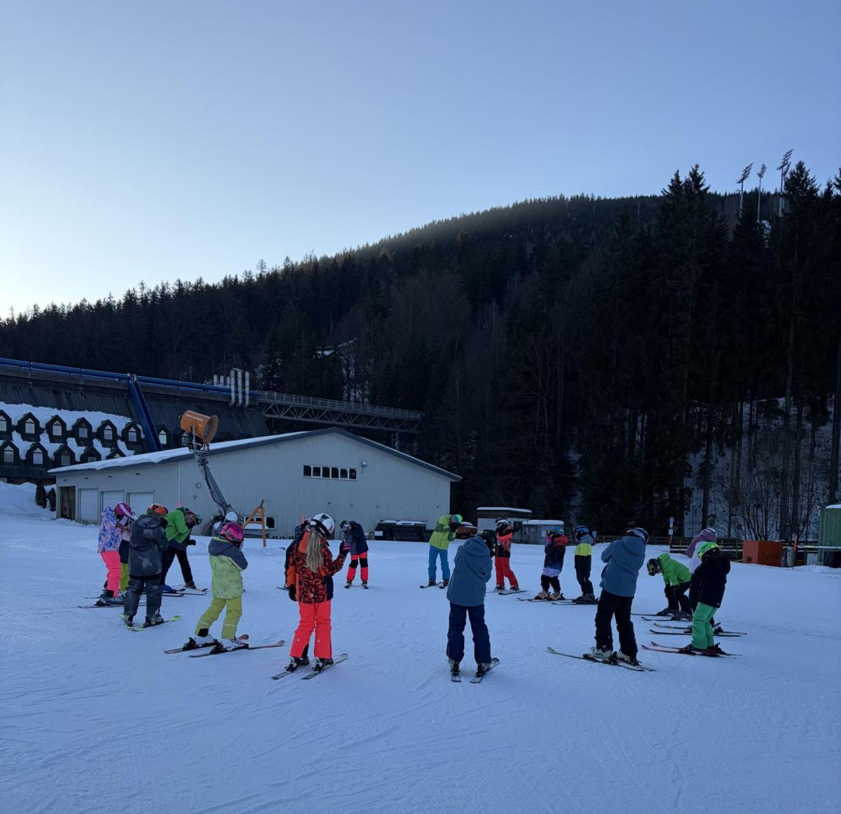 První den lyžování máme zdárně za sebou.. Dojeli jsme v pořádku, ubytovali jsme se, najedli a vyrazili ven. První lyžování jsme všichni statečně zvládli, začátečníci trénovali na mírném kopečku a pohyblivém koberci a ostatní na sjezdovce a vleku u hotelu pod dohledem instruktorů. Počasí bylo v pořádku, jsjezdovka byla místy zledovatělá, ale všichni se s tím poprali výborně. Zítra nás čeká lyžování dopoledne i odpoledne a po večeři budeme psát dopisy.
