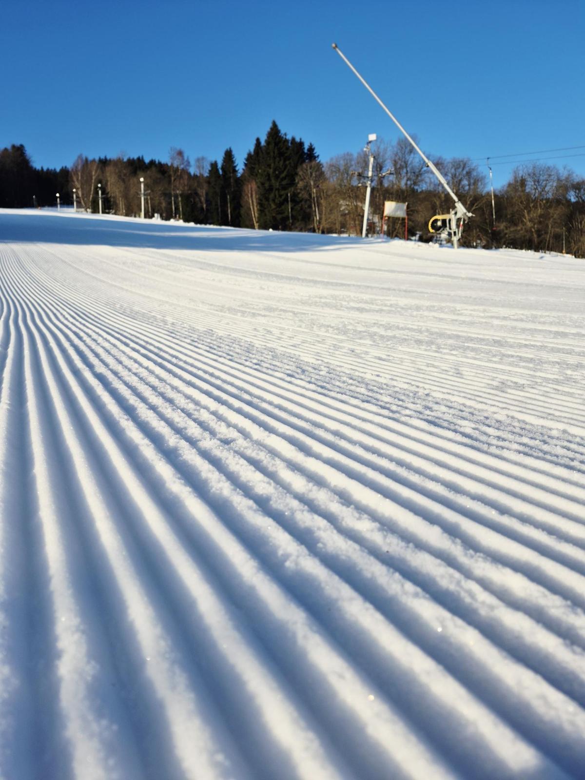 Hurá, opustila nás doba ledová, sjezdovka byla manšestrová. Všichni už jezdí na vleku.