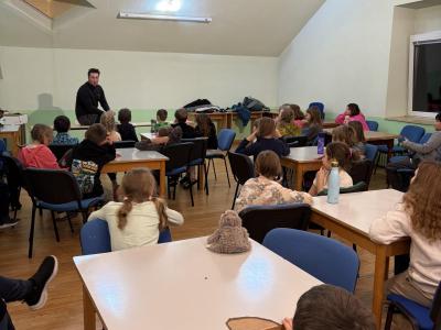 Po večeři byla beseda s místním panem učitelem a instruktorem na téma oblečení do hor. Všechny kupodivu se vrátily.