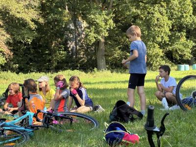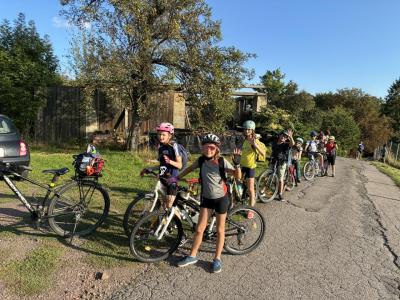 Dnes jsme se na kolech minuli tři kolem rybníky a několik skal. Ujeli jsme kolem 16 km a minimálně 6 km bylo do kopce. S kola jsme prozatím spadli jenom já a Tomík, což jenom posílilo naši vůli a odhodlání :) Děti nacvičují divadlo a my se těšíme na představení.