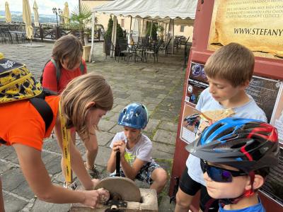Dneska jsme si užili různé hry na hřišti a odpoledne jsme navštívili zámek Hrubá Skála. Pomalu se balíme a zítra se na Vás těšíme kolem 12:00.
