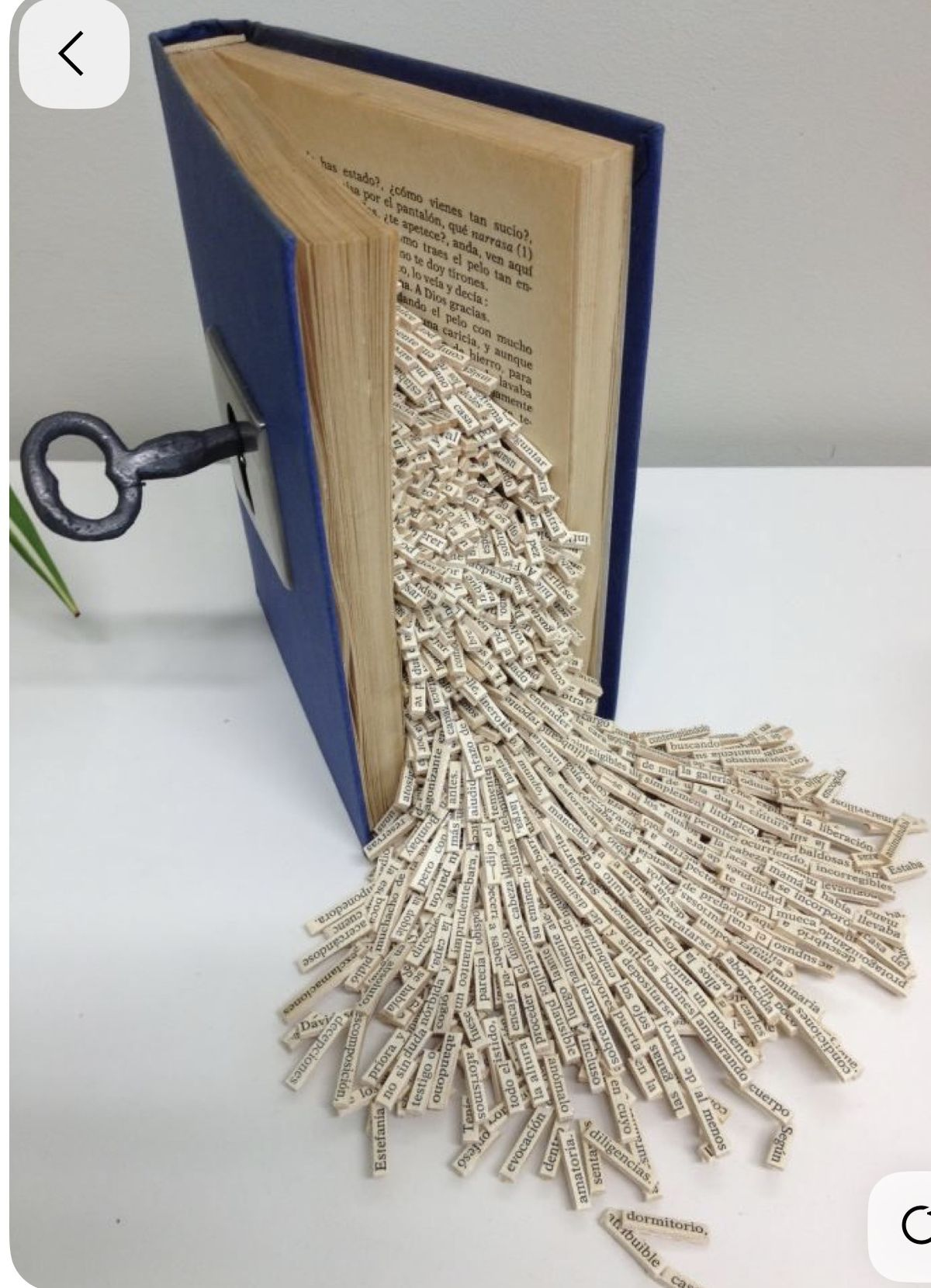 Vaším úkolem je přetvořit starou, vyřazenou knihu v prostorové umělecké dílo, které vypráví, o čem kniha je, aniž by ji někdo musel číst.